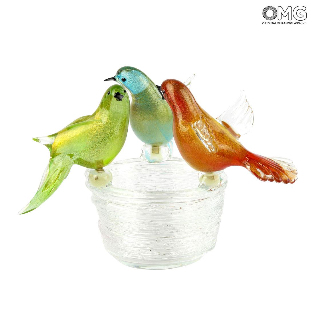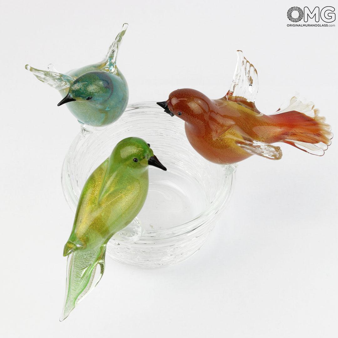 Nido di 3 uccelli - Ambra - Vetro di Murano Originale OMG