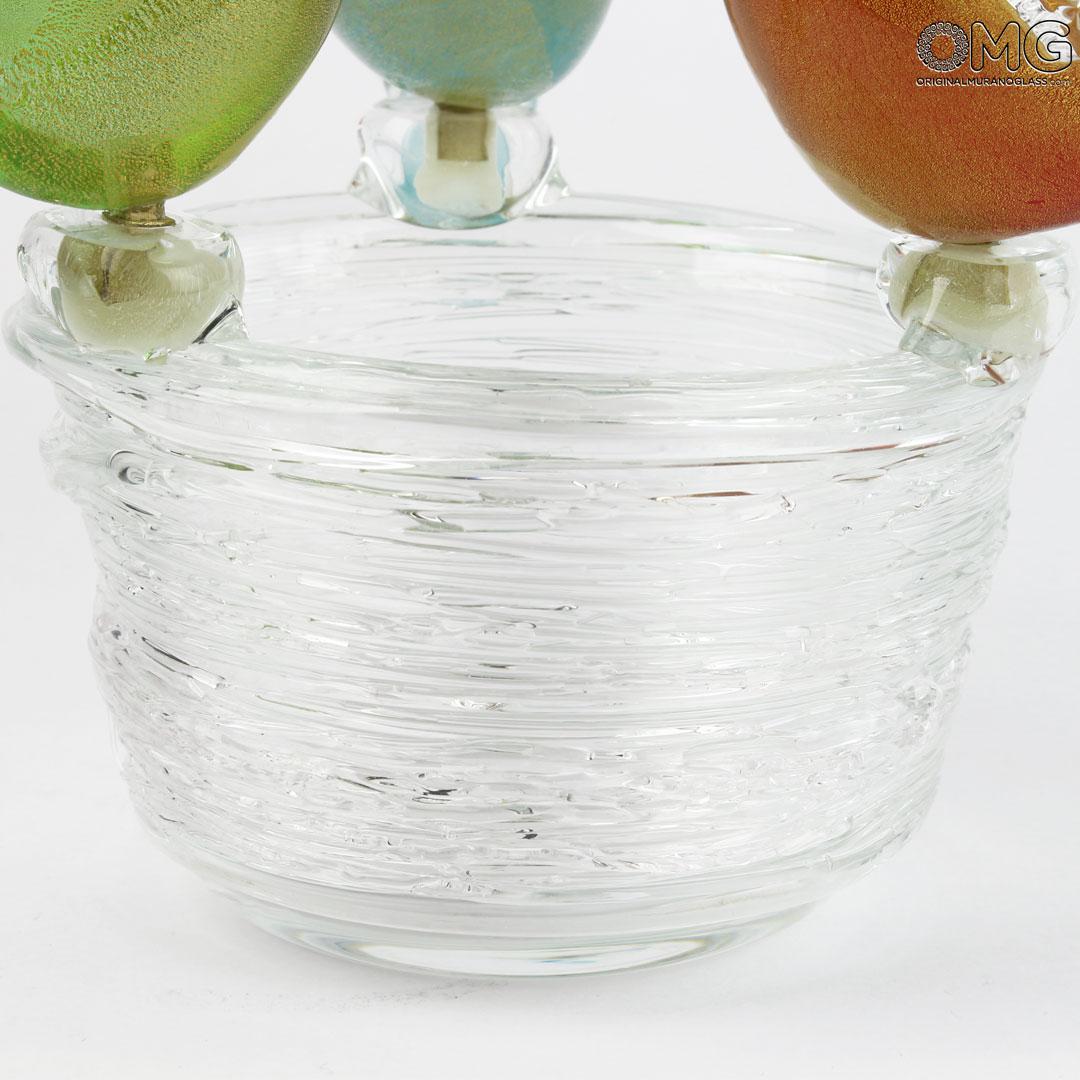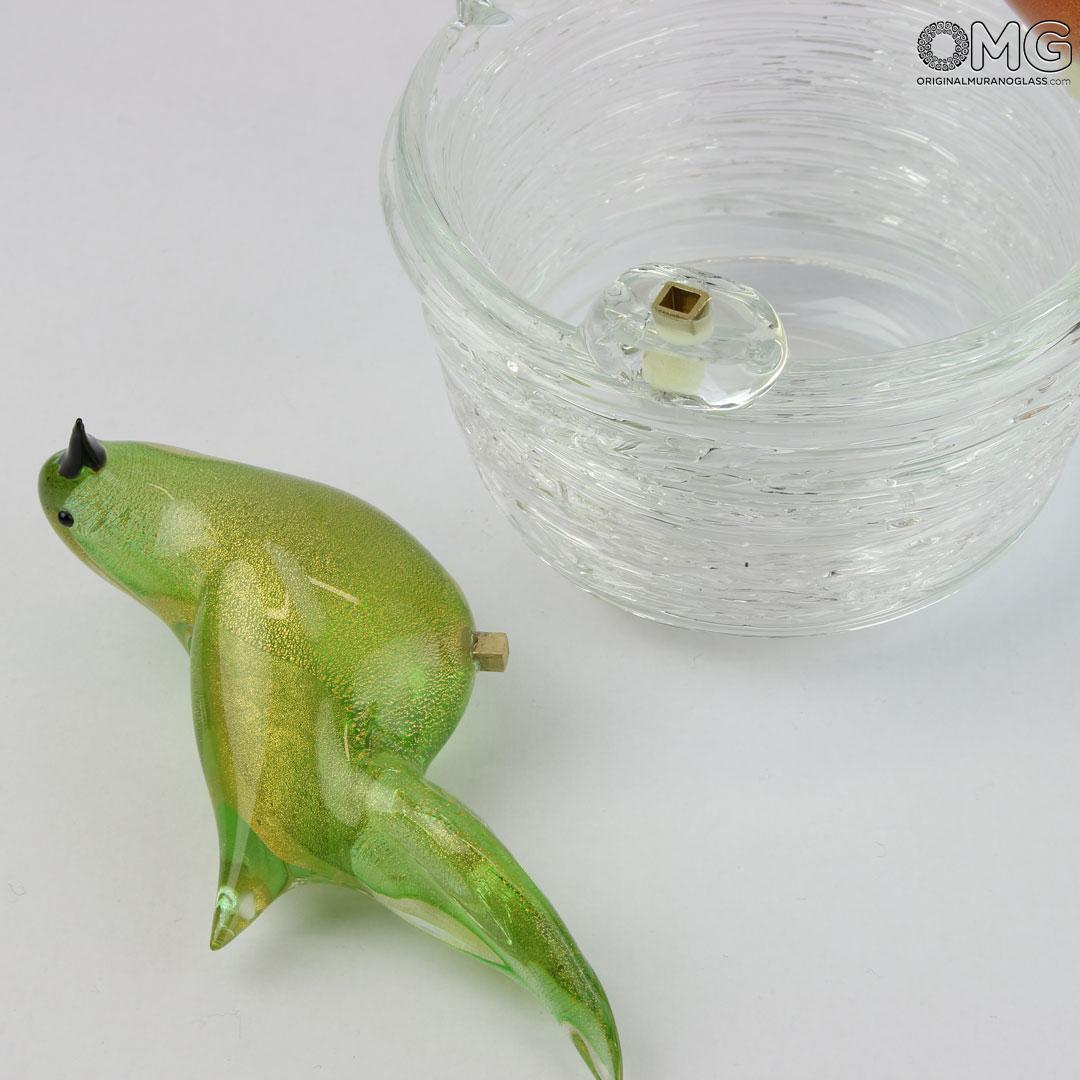 Spettacolare nido con uccellini in vetro di Murano con oro 24 carati. Scultura elegante ed elaborata. La posizione degli uccellini può essere modificata a piacimento.