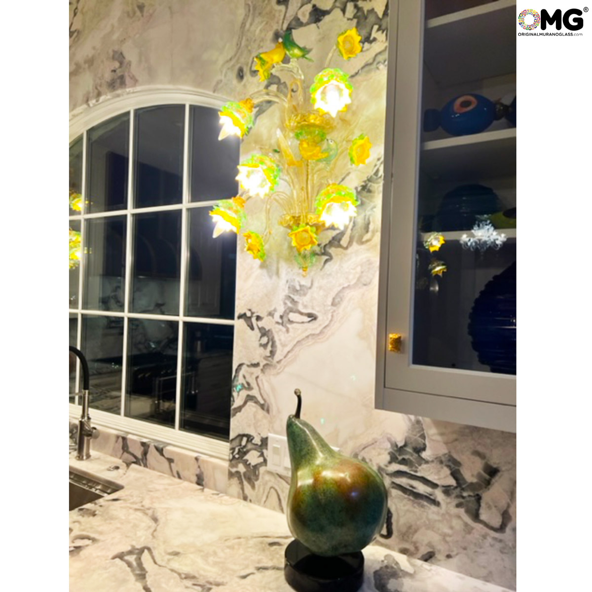 L'opera d'arte è un applique floreale in stile veneziano, questa lampada da muro di Murano arricchisce qualsiasi stanza interna con eleganza e design impressionante.
