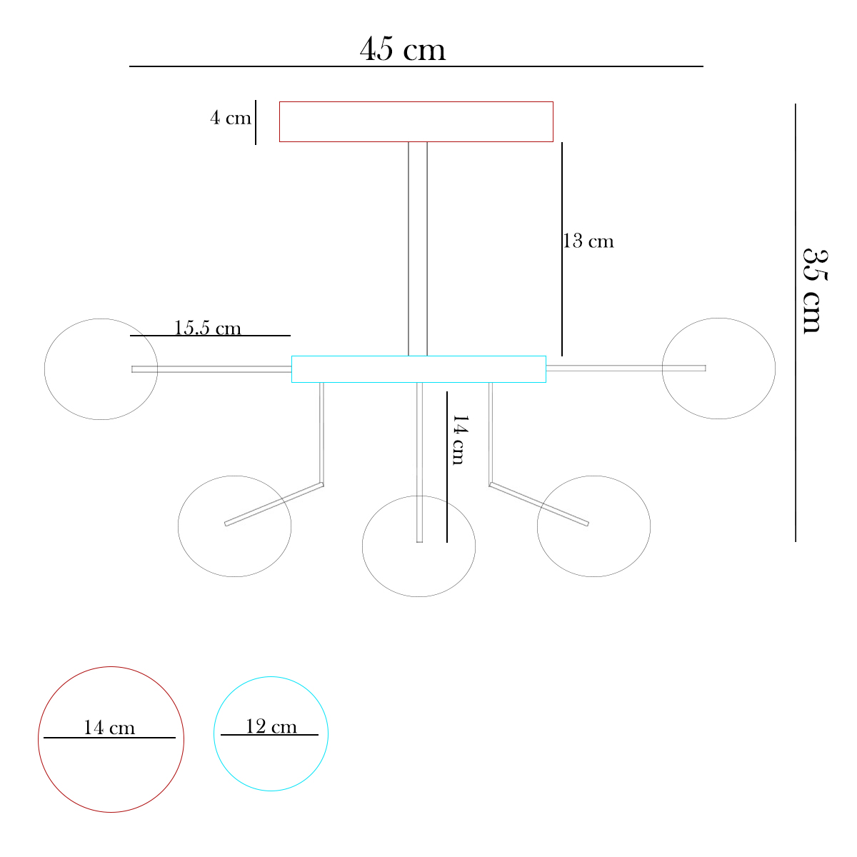 Dimensione della singola sfere diametro 15 cm (6 pollici).