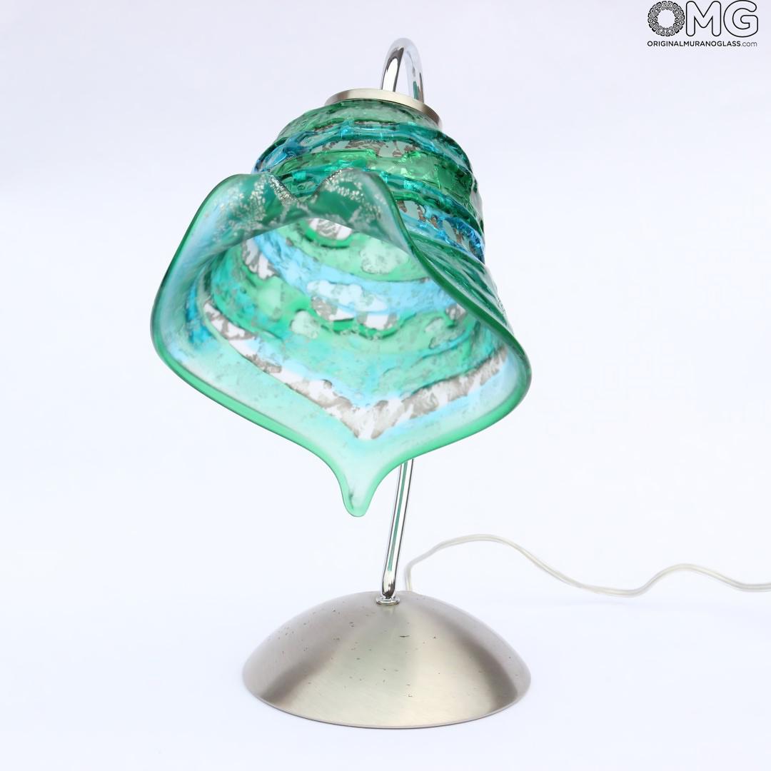 Lampada da tavolo fatta a mano in vetro di Murano. L'opera è realizzata con la tecnica a Sbruffo con una splendida forma floreale. Firmata dal maestro e con marchio Vetro Artistico® Murano.