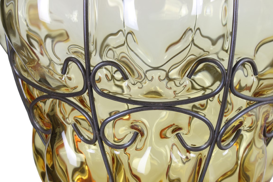 La reinterpretazione delle gabbie veneziane in una collezione di sospensioni in cui il vetro viene soffiato all’interno di una struttura metallica che ne caratterizza le forme. Vetro e metallo si uniscono in un unico corpo in cui i contrasti materici e volumetrici costituiscono un classico eterno dalla presenza scenica evocativa. La collezione è completata da una versione outdoor certificata con grado di protezione IP44.