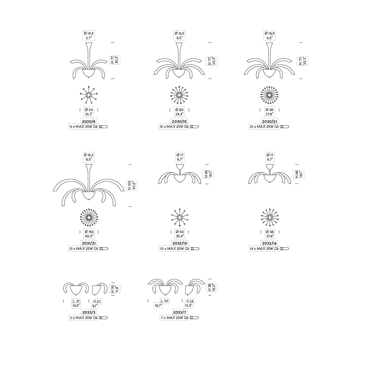 Un design coinvolgente che si inserisce in tutti i tipi di ambiente con esuberanza delle forme e funzionalità. Come in un'esplosione di vetro opaco o trasparente, i bracci curvilinei si espandono dalla coppa in metallo rivestita di vetro per trasportare la luce in varie direzioni e illuminare il contesto con un meraviglioso effetto scenografico.
