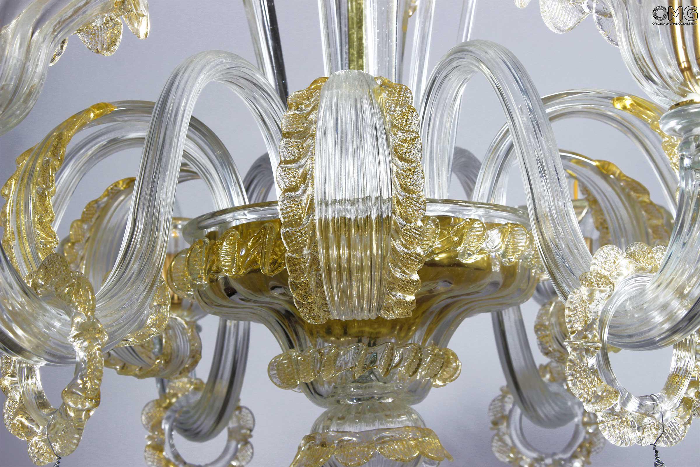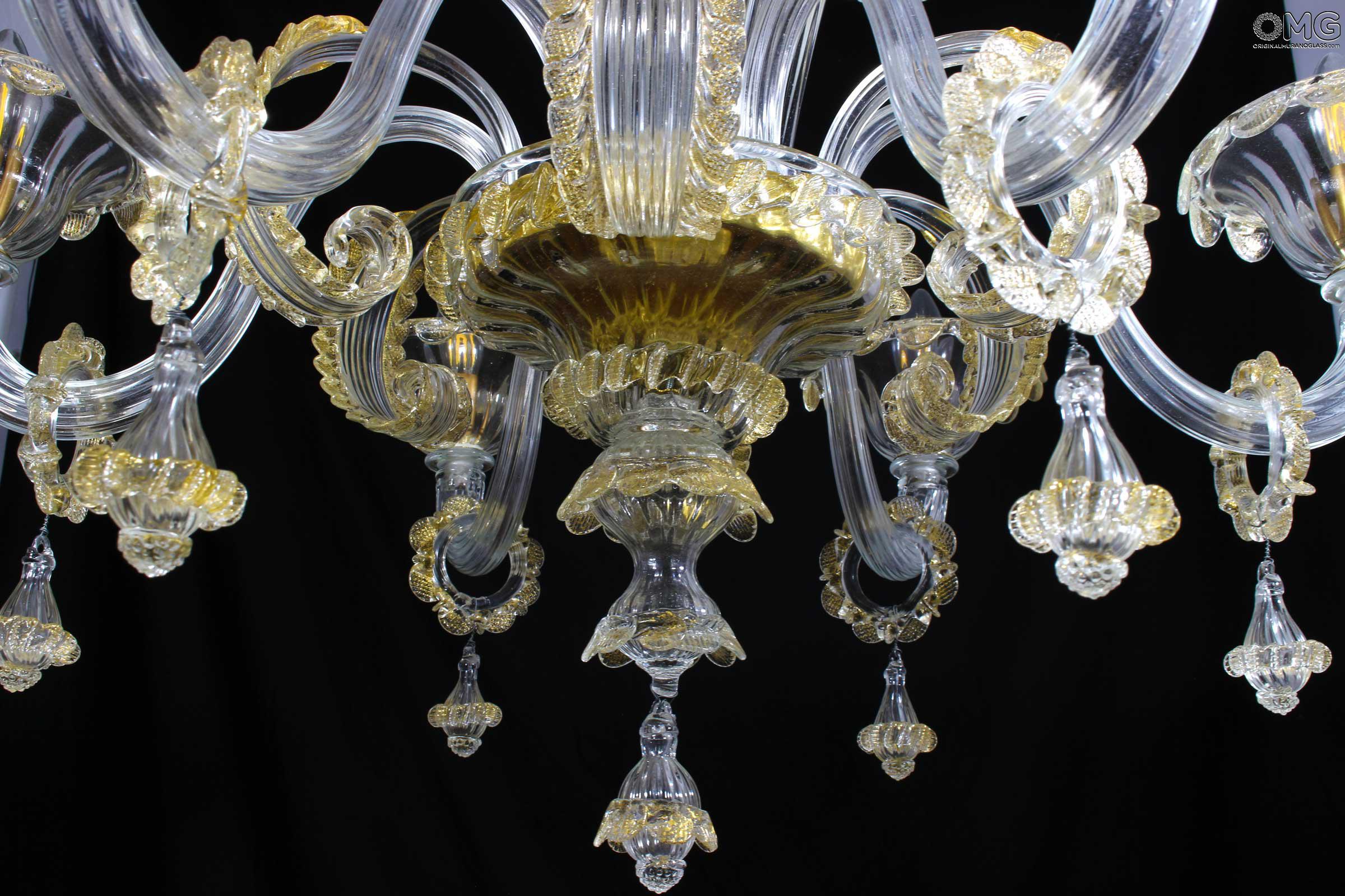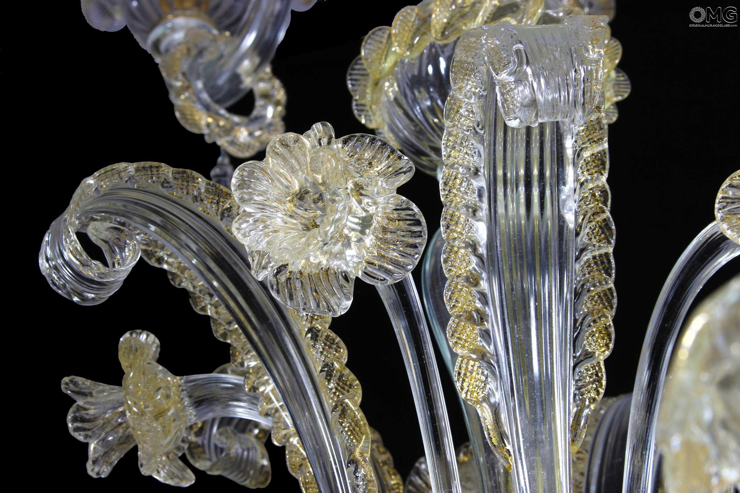 Lampadario originale in vetro di Murano con dettagli in puro oro zecchino 24 carati.