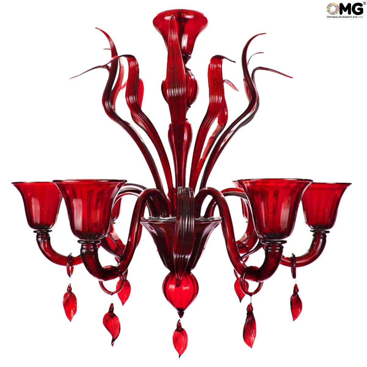Lampadario Veneziano Corvo Rosso - Vetro di Murano