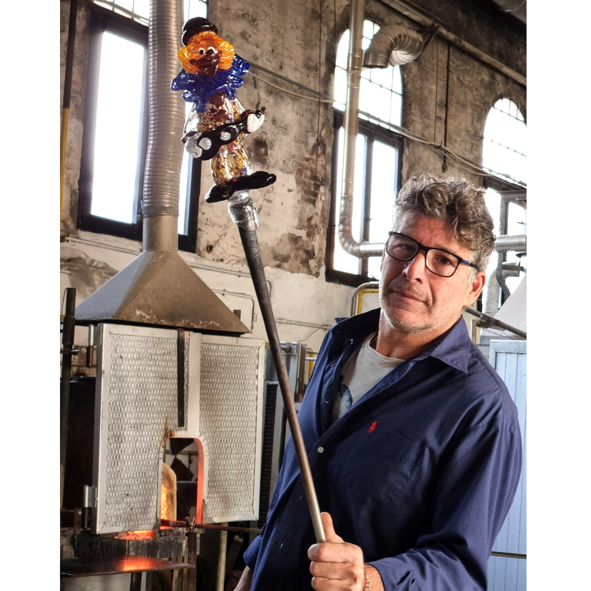 Bellissimo pagliaccio in vetro multicolore. Lavorato con la tecnica del vetro soffiato. Molto curato nei particolari.