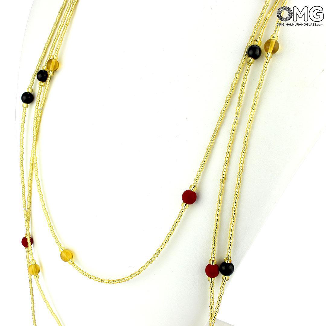 Collana di perle veneziane fatta a mano in vetro di Murano originale. Le perle sono realizzate una a una mediante lavorazione al lume dai nostri maestri vetrai. Esclusiva ed originale idea regalo per donna. Gioiello ideale per essere indossato durante eventi di gala o feste serali.