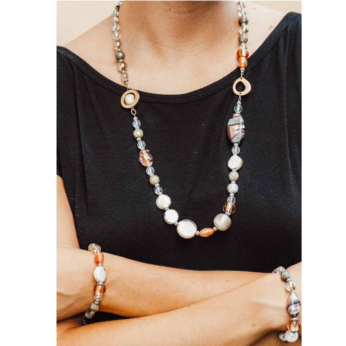 Collana in perle fatta a mano in vetro di Murano con la tecnica della lavorazione a lume.