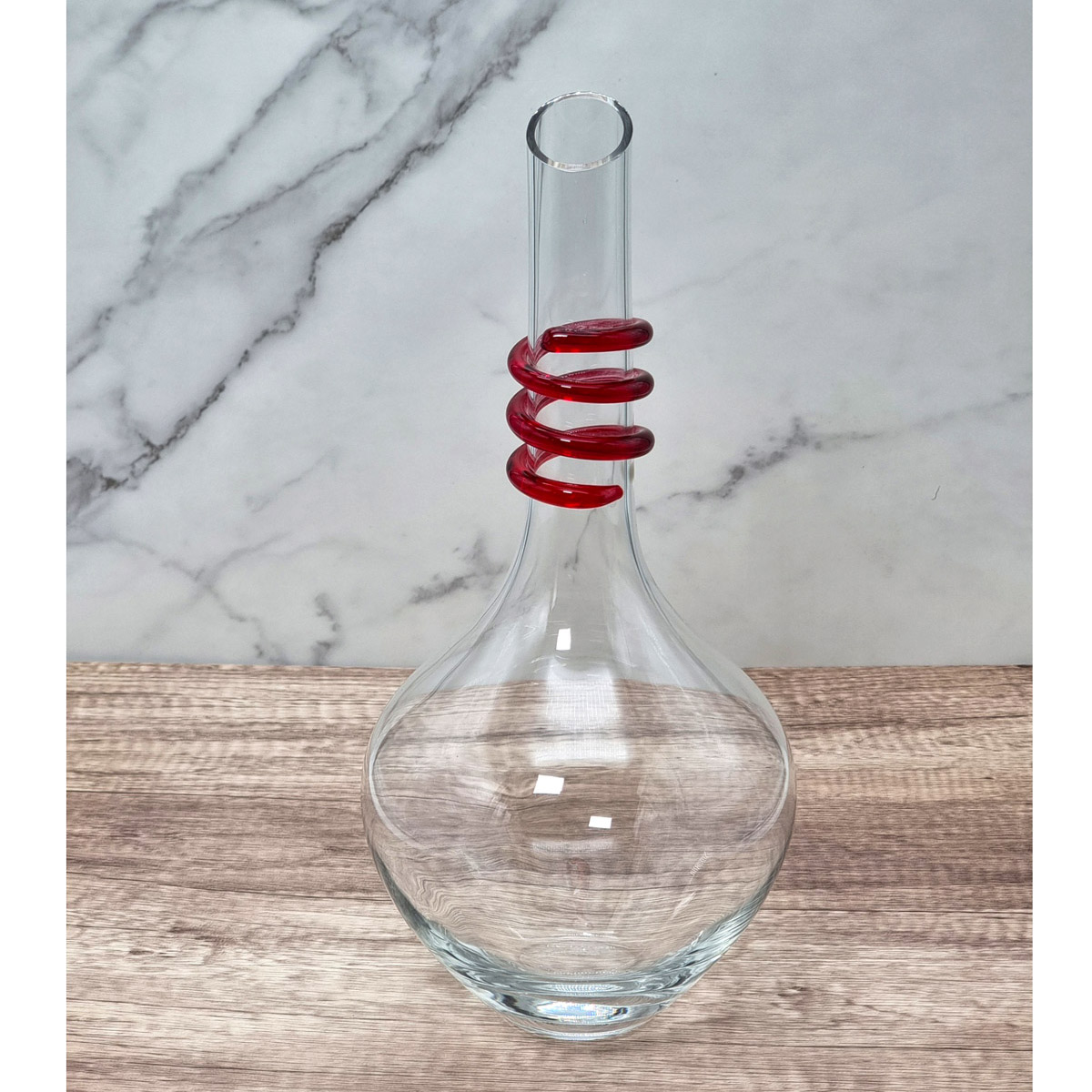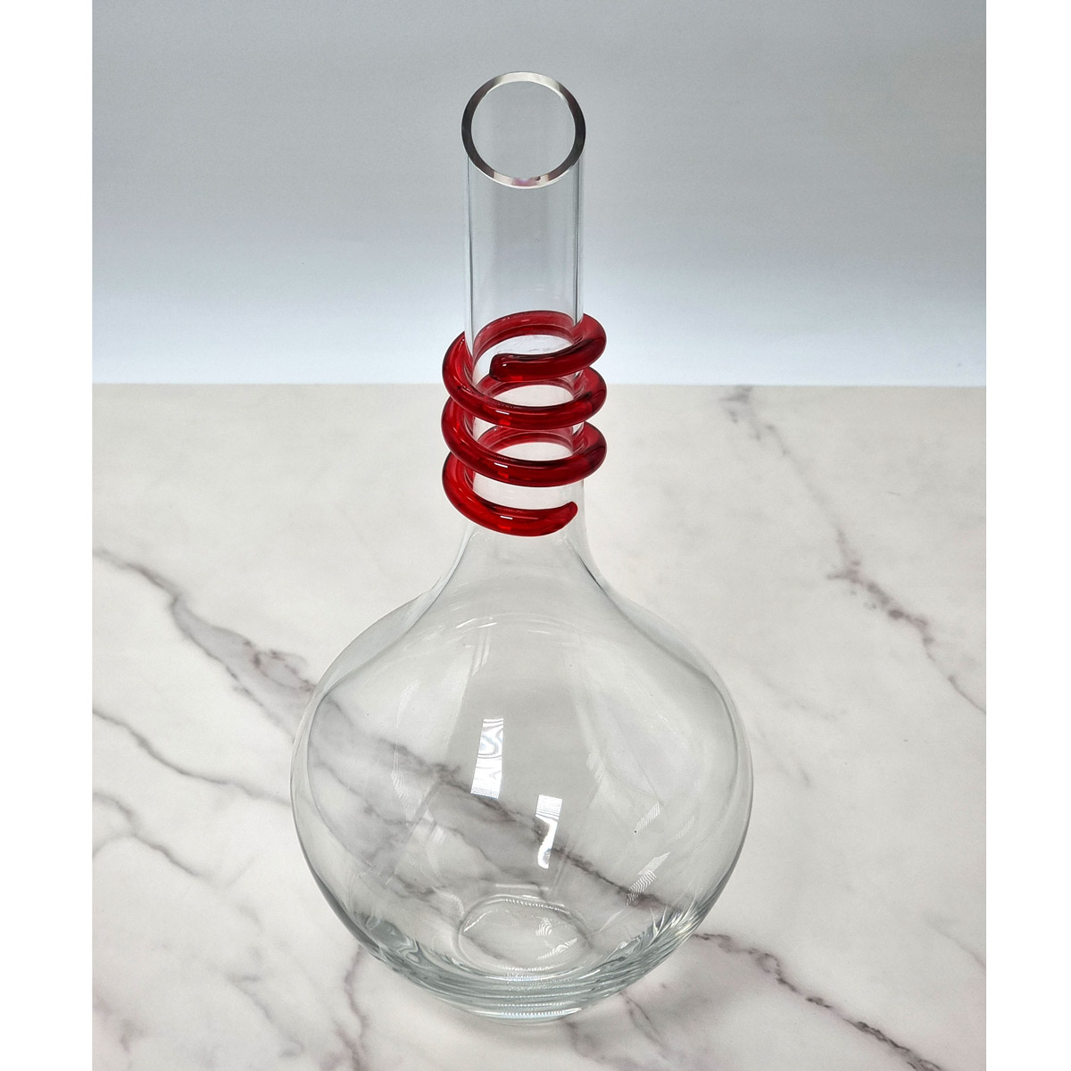 Elegante decanter in cristallo soffiato, realizzato abilmente in collaborazione con i maestri toscani.