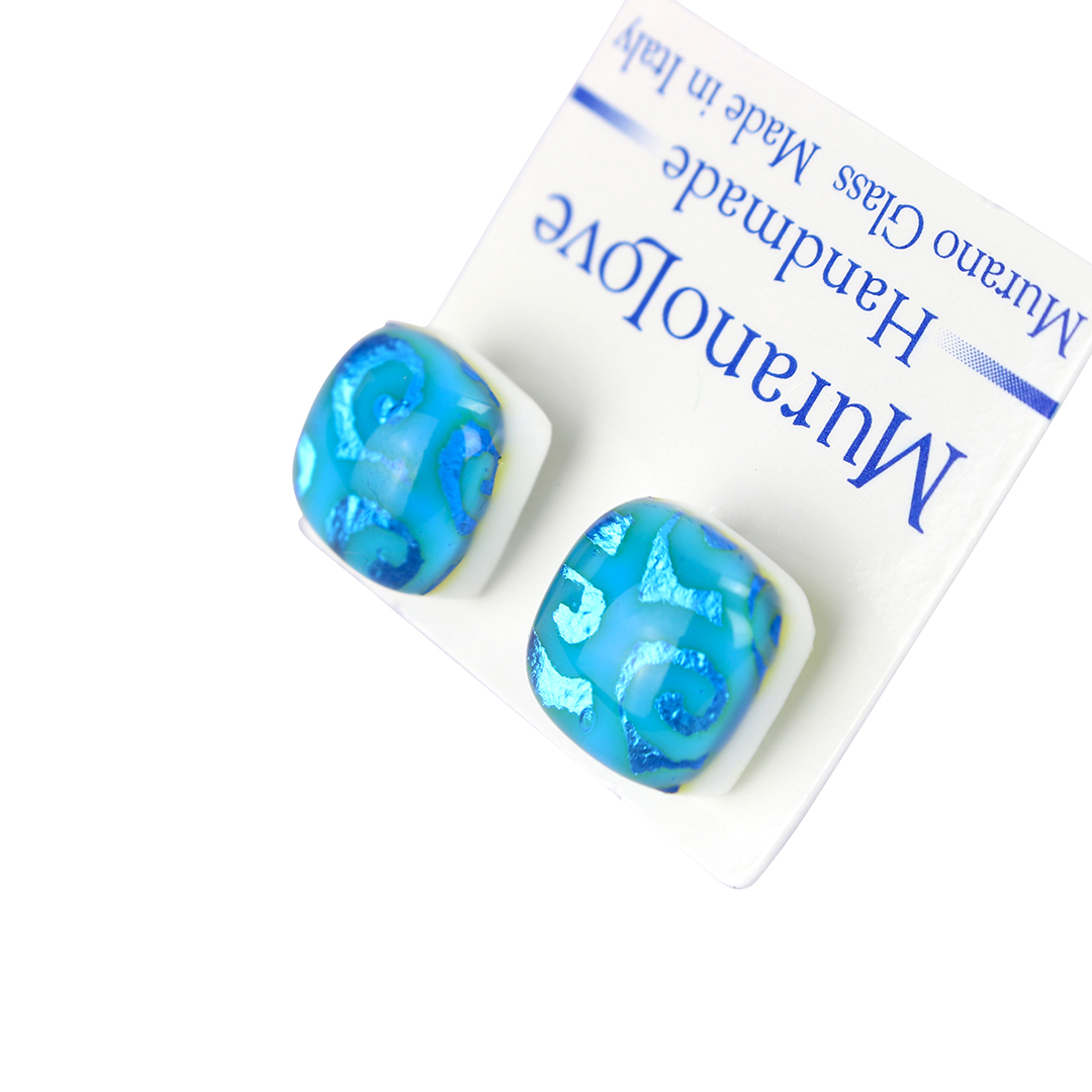 Orecchini in vetro di murano realizzati con la tecnica della lavorazione in vetro fusione.
