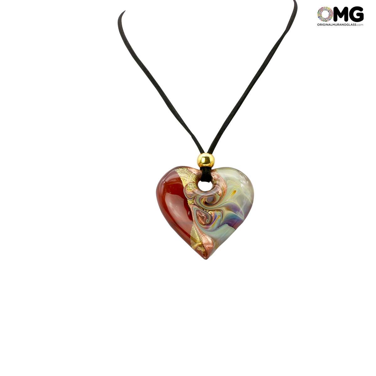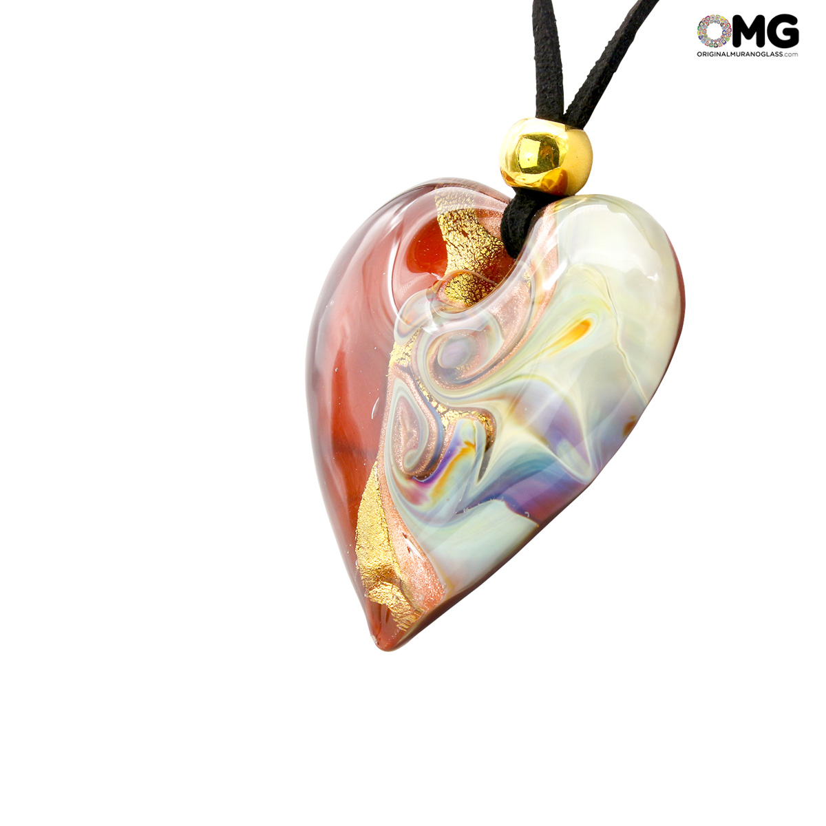 Questo pendente a cuore è realizzato a mano in vetro di Murano con la tecnica della vetro fusione, arricchito con foglia d'oro 24kt. Questa collezione è ispirata ai più grandi artisti visionari che hanno segnato la loro epoca.