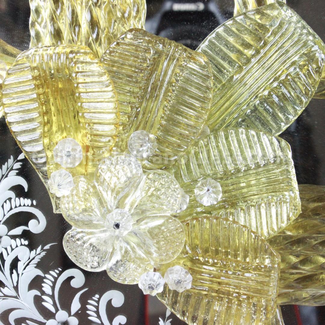 Lo specchio è composto da fiori e canne a ricci, con vetro fuso con oro 24kt, e struttura in legno.