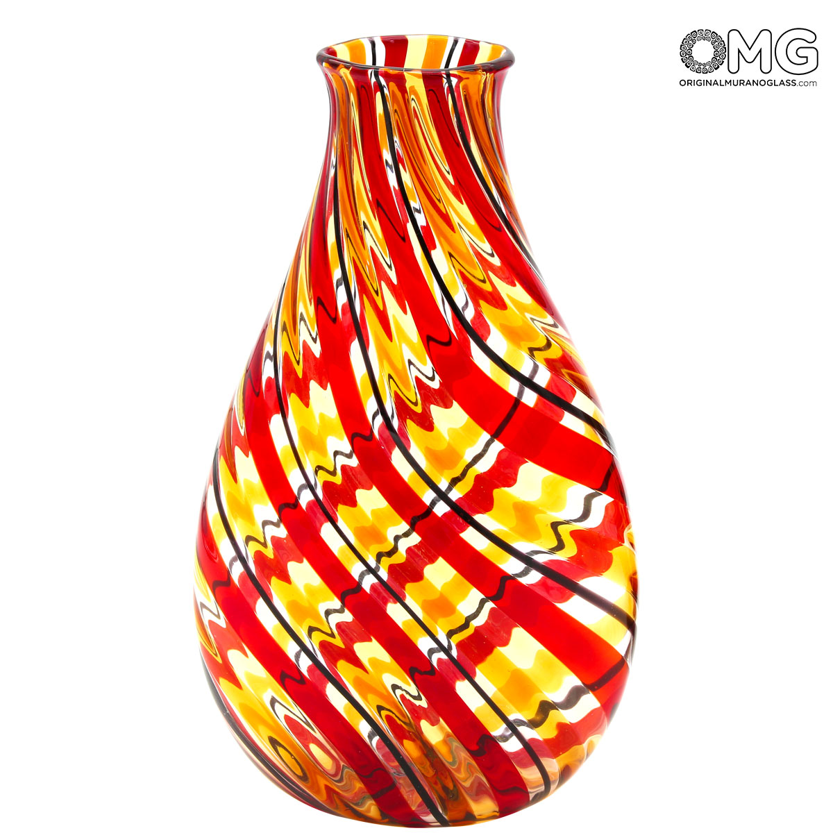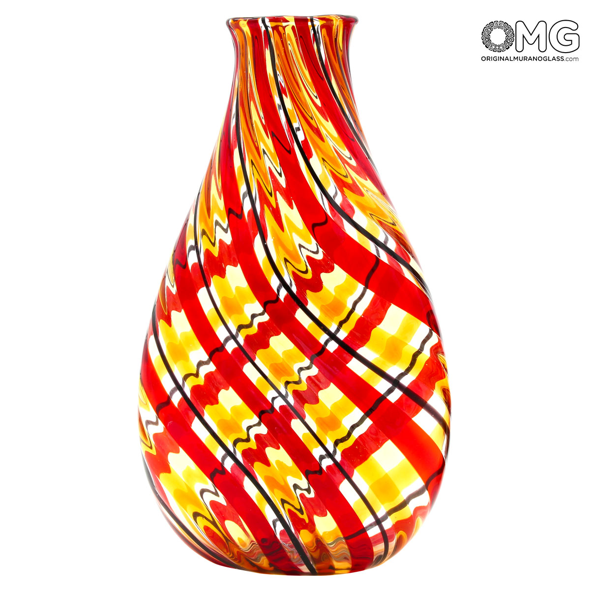Twister Rosso - Vaso in Filigrana - Vetro di Murano Originale OMG