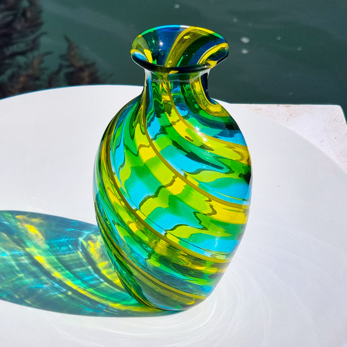 Vaso realizzato con la tecnica del vetro soffiato e decoro in canna mille fiori. Lavorato a puntello e molato a mano. Lavorato a puntello e molato a mano. Le dimensioni contenute - che tuttavia non vanno a discapito della qualità - lo rendono un oggetto d'arredamento perfetto per ogni superficie o angolo dell'ambiente.