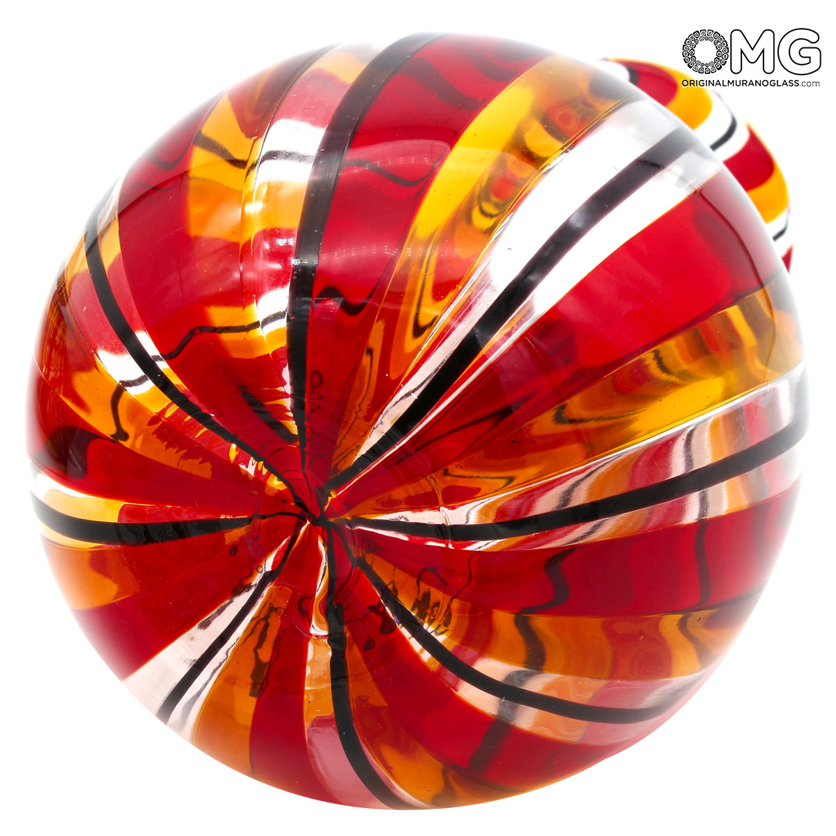 Questo vaso soffiato fatto a mano in vetro di Murano è realizzato con una tecnica di diffuso utilizzo nella lavorazione artigianale muranese.