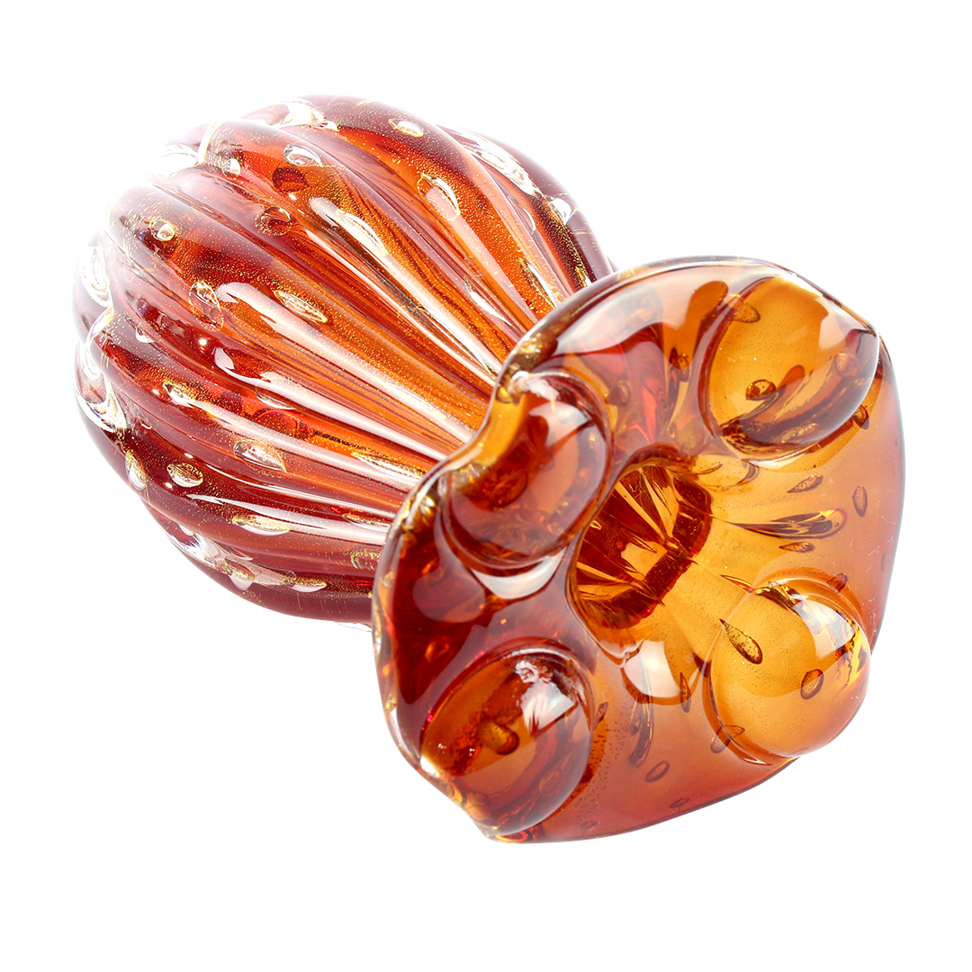 Vaso di lusso fatto a mano. Questa opera d'arte è un condensato di diverse tecniche, superbamente espresse. Il maestro del vetro deve innanzitutto creare una speciale texture di bolle sommerse. Quindi deve finire il vaso usando la tecnica della modellazione, della soffiatura e impiegando la foglia d'oro.